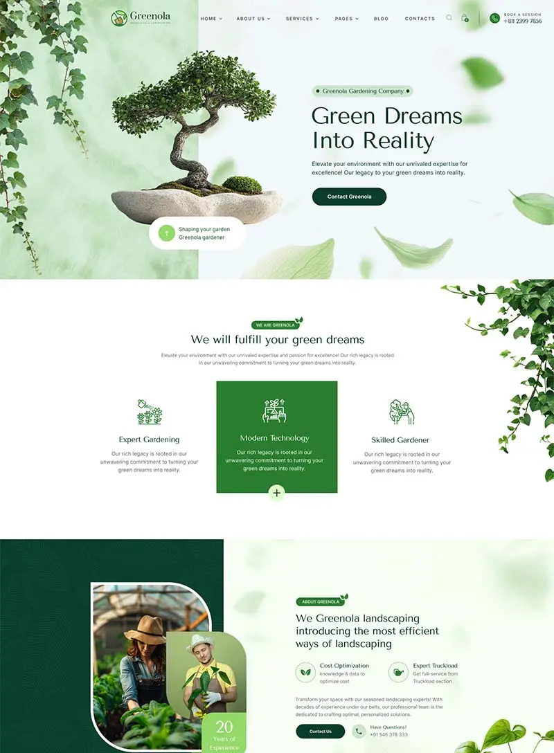 With Greenola, you can easily create your own complete website. The inner pages have been optimally designed and arranged so that you can quickly and easily adjust your website to your needs.